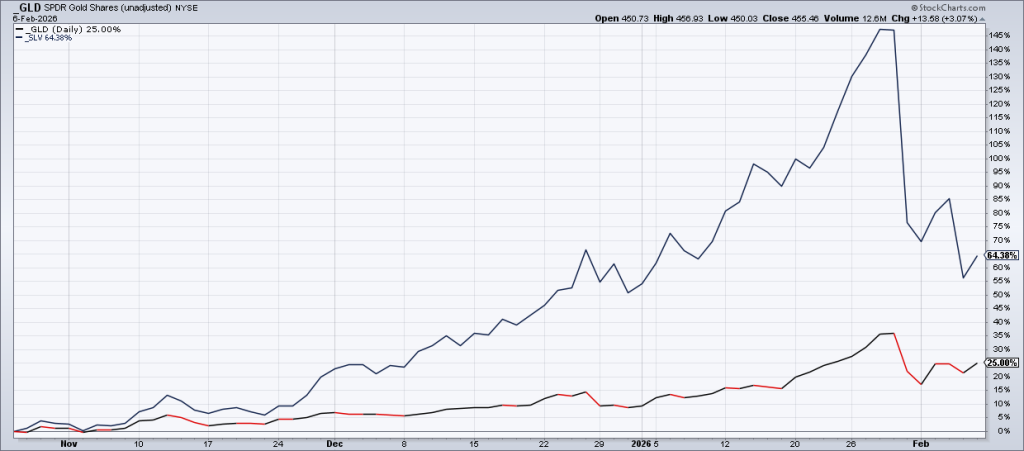 This thesis integrates all of the performance data summarized at the start of this blog. As we noted, the dollar (UUP) is -3.05% while The S&P Metals and Mining Sector is +24.62% while Technology (XLK), Communications Services (XLC) and Consumer Discretionary (XLY) underperform. In other words, investors are rotating out of digital assets into hard assets as the dollar comes under pressure as the global fiat monetary order that has existed since Nixon removed the last link to the gold standard on August 15, 1971 unravels. In this new regime, the old formula (MAGS) is being replaced by a new one: Hard Assets > Digital Assets.
