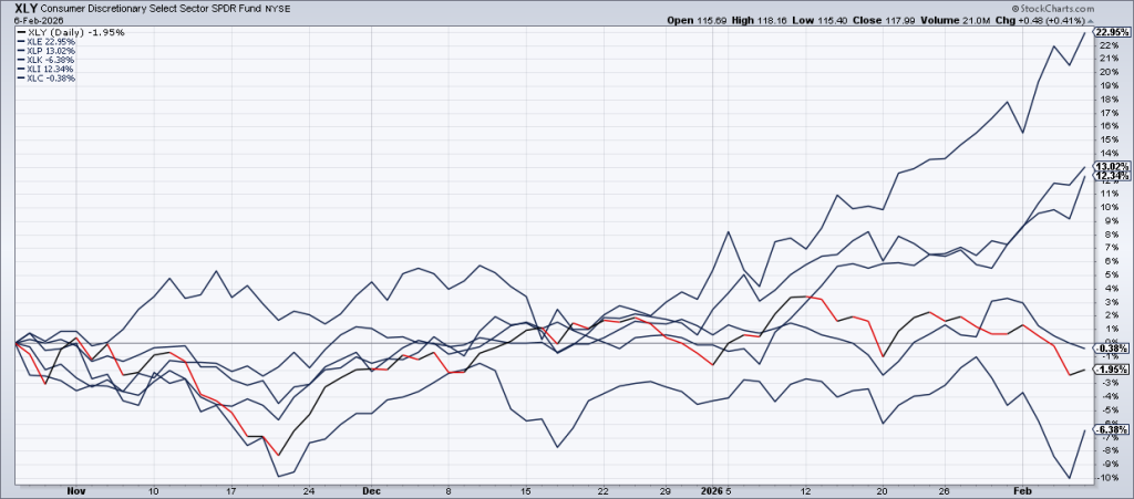 Let’s start with the tape. Over the last 14 1/2 weeks (since Wednesday October 29, 2025), The Magnificent 7 have badly underperformed (-7.69%) while the rest of the S&P 500 has performed superbly (RSP: +6.20%). The net result for the S&P as a whole has essentially been flat (+0.60%). I have also included the performance of The Dollar (UUP: -3.05%), The S&P Metals & Mining Sector (XME: +24.62%) and The S&P Consumer Staples Sector (XLP: +12.13%) in the chart above.