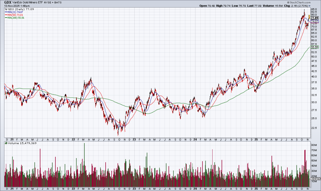 In this type of investing, because my insight is more macro in nature I have played it via ETFs rather than picking individual stocks as I have no expertise in mining. While the precious metals have gotten extended, this trade is far from over IMO.