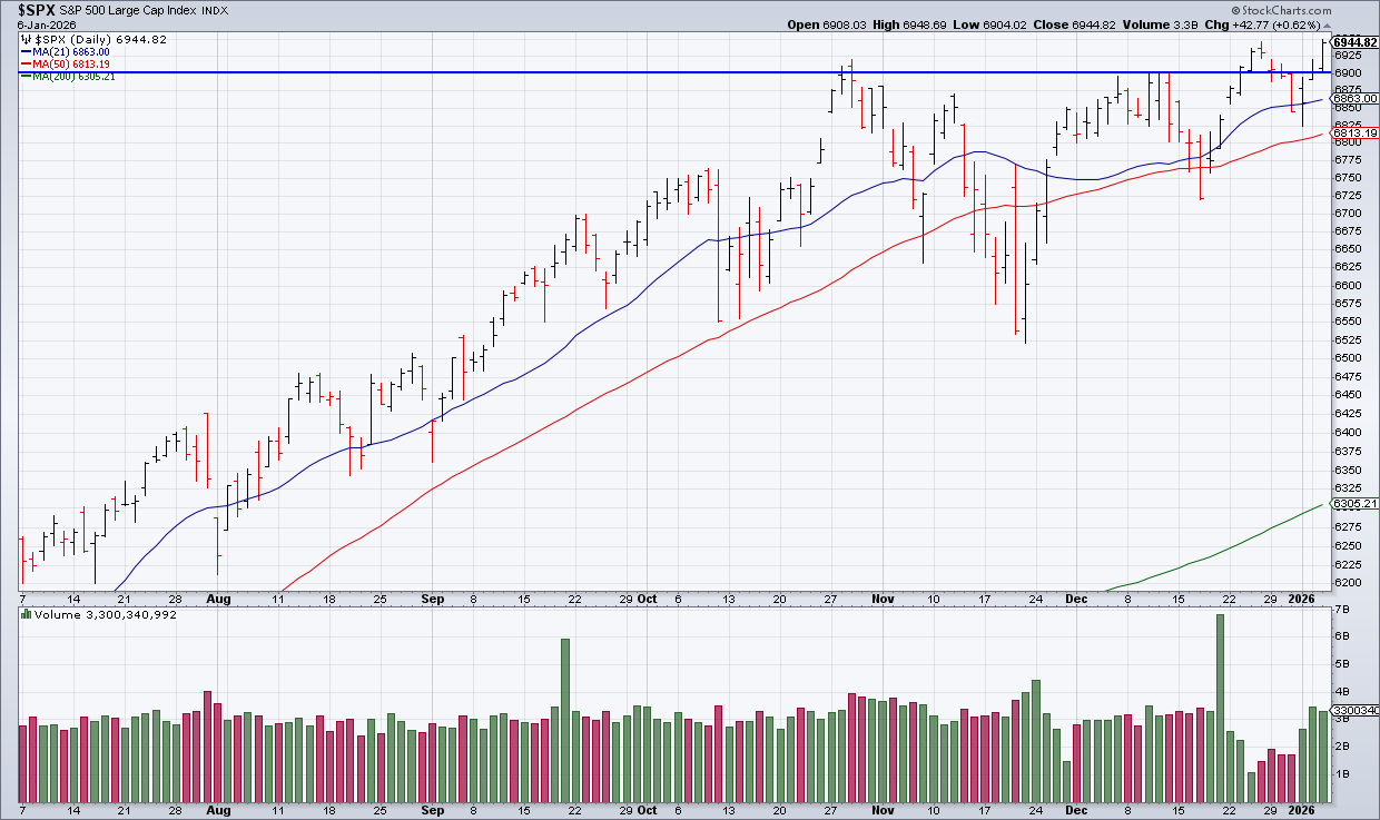In my opinion, the bears are right. The S&P can get to 7,000 or maybe a little higher with QQQ and MAGS continuing to go sideways – but not much higher. For the bull to continue to roll, mega cap tech is going to need to start moving again.