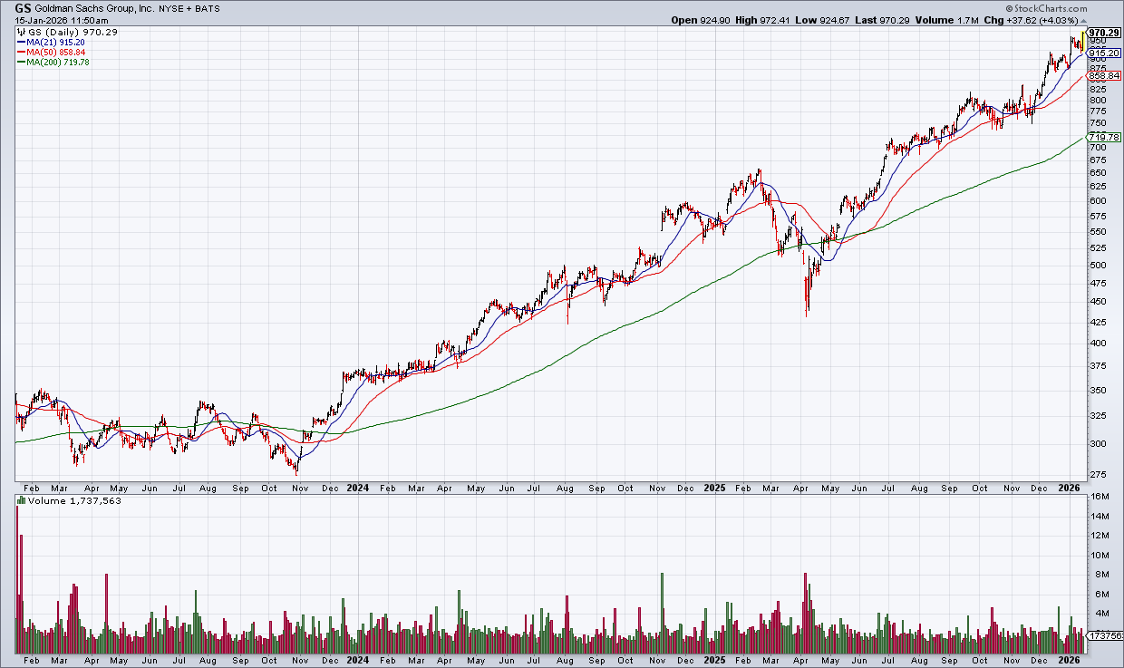 Goldman Sachs (GS) is the leading investment banker providing companies with access to the financial markets. They underwrite equity and debt, offer advice on mergers and acquisitions and also have a wealth management division. GS reported EPS of $51.32 for 2025 this morning – compared to $40.54 in 2024 and $22.87 in 2023.